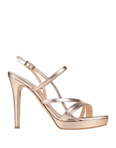 ankle strap sandals, coated fabric, metallic, solid color with appliqués, crystals, buckle-fastening ankle strap, round toe, stiletto heel, rubber sole