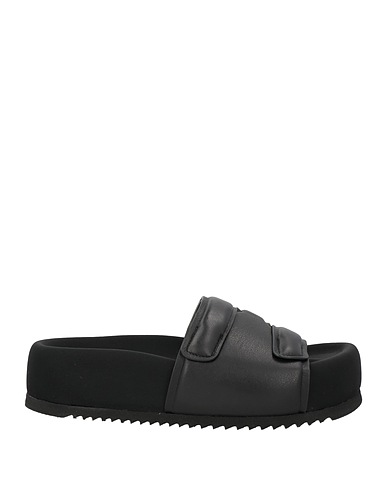 slide sandals, leather, solid color, no appliqués, leather lining, round toe, flat, flatform, contains non-textile parts of animal origin