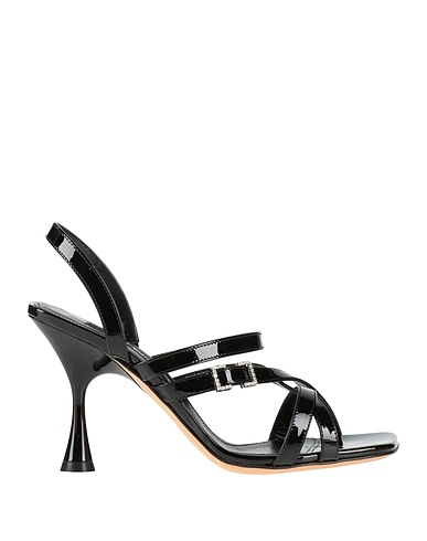 ankle strap sandals, patent leather, solid color with appliqués, crystals, leather lining, square toe, spool heel, leather sole, contains non-textile parts of animal origin