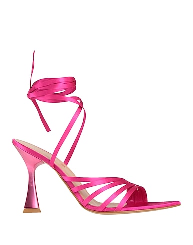 sandals, satin, solid color, no appliqués, fabric inner, ties at ankle, pointed toe, spool heel, rubber sole