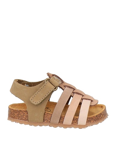 open sandals, nubuck, multicolor, no appliqués, leather lining, velcro fastening, round toe, flat, rubber sole, contains non-textile parts of animal origin