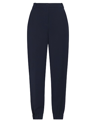 crepe, metal applications, brand logo, solid color, high waisted, belt loops, tapered leg, regular fit, unlined, zipper closure, 1 button, multipockets, chinos