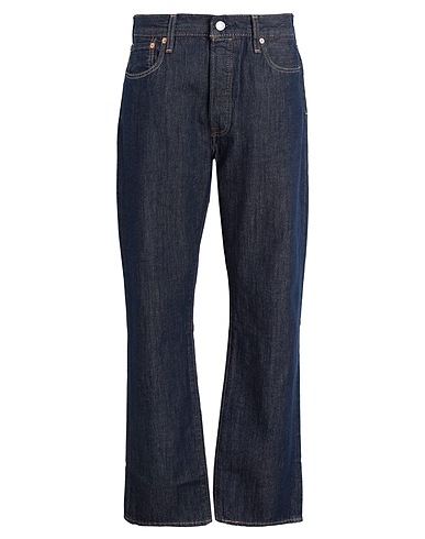 denim, leather applications, solid color, dark wash, high waisted, straight leg, regular fit, hidden buttons, 1 button, five pockets, model: 501 original, contains non-textile parts of animal origin, small sized, straight-leg model