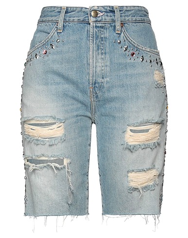 shorts, denim, faded, solid color with appliqués, studs, light wash, high waisted, button fastenings, five pockets, planning a weekend getaway or beach vacation? this is the effortless summer style you need