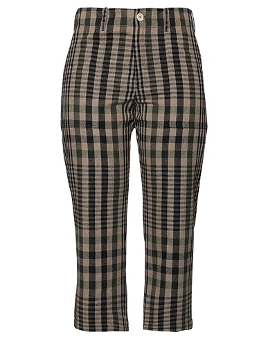 plain weave, no appliqués, checked, high waisted, belt loops, straight leg, regular fit, zipper closure, 1 button, multipockets, tailored