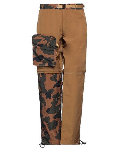 techno fabric, detachable application, camouflage, mid rise, straight leg, comfort fit, zipper closure, drawstring hem, multipockets, cargo