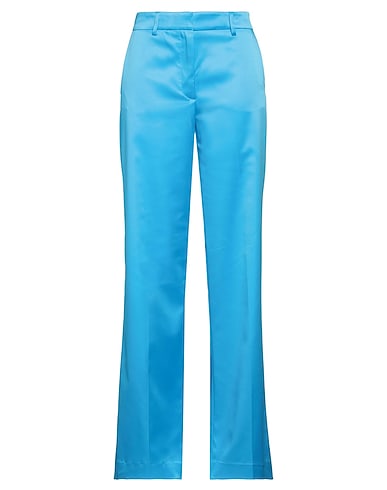 straight-leg pants, satin, solid color, no appliqués, mid rise, belt loops, regular fit, zipper fastening, hook fastenings, multipockets, stretch, dry clean, do not bleach, do not tumble dry