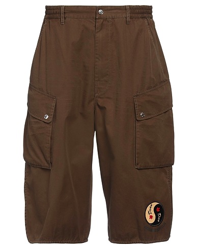 cargo shorts, woven, solid color with appliqués, embellished, brand logo, high waisted, regular fit, button fastenings, zipper fastening, multipockets, machine wash or dry clean, do not bleach, do not tumble dry