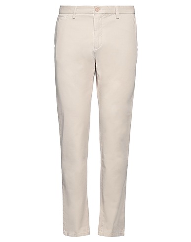twill, brand logo, leather trims, solid color, mid rise, belt loops, tapered leg, regular fit, zipper fastening, 1 button, multipockets, contains non-textile parts of animal origin, chinos
