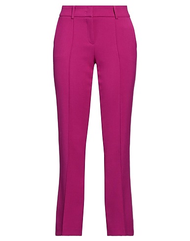 straight-leg pants, crepe, stretchy fabric, solid color, no appliqués, mid rise, belt loops, regular fit, zipper fastening, hook fastenings, multipockets, machine wash or dry clean, do not bleach, do not tumble dry
