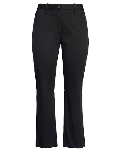 bootcut pants, twill, stretchy fabric, solid color, brand logo, mid rise, belt loops, regular fit, zipper fastening, pockets, machine wash or dry clean, do not bleach, do not tumble dry, this brand runs large