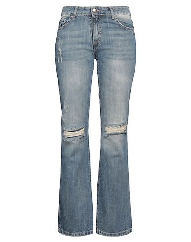 denim, brand logo, solid color, medium wash, mid rise, regular fit, zipper fastening, 1 button, multipockets, machine wash or dry clean, do not bleach, do not tumble dry, boot-cut jeans