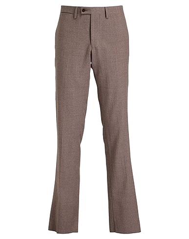 wool, no appliqués, solid color, low waisted, tapered leg, slim fit, 1 button, hook fastenings, multipockets, dry clean, do not bleach, do not tumble dry, tailored pants