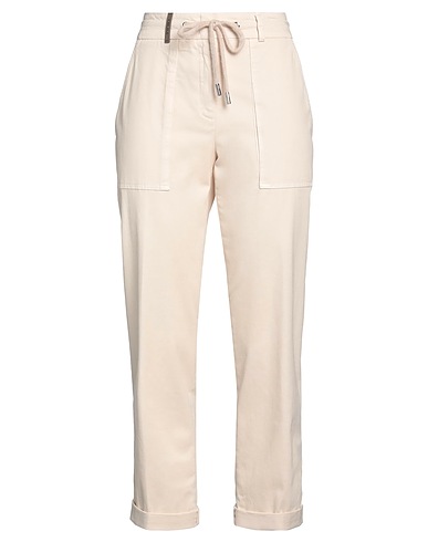 woven, no appliqués, solid color, high waisted, elasticized waist, regular fit, drawstring fastening, zipper fastening, folded hem, multipockets, stretch, hand wash or dry clean, do not bleach, do not tumble dry, tapered pants