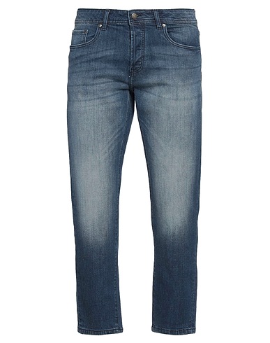 tapered jeans, denim, faded, solid color, brand logo, dark wash, mid rise, belt loops, regular fit, concealed button fastenings, five pockets, machine wash or dry clean, do not bleach, do not tumble dry, cropped