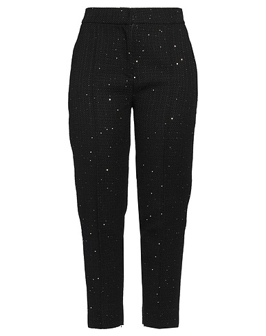 tapered pants, tweed, sequins, solid color with appliqués, high waisted, regular fit, zipper fastening, hook fastenings, multipockets, dry clean, do not bleach, do not tumble dry
