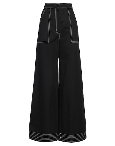 wide-leg pants, gabardine, solid color, embroidered, brand logo, high waisted, belt loops, relaxed fit, 1 button, zipper fastening, multipockets, machine wash or dry clean, do not bleach, do not tumble dry