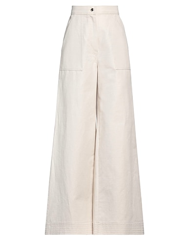 wide-leg pants, gabardine, solid color, embroidered, brand logo, high waisted, belt loops, relaxed fit, 1 button, zipper fastening, multipockets, machine wash or dry clean, do not bleach, do not tumble dry