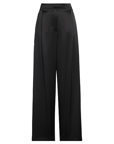 wide-leg pants, satin, solid color, no appliqués, high waisted, relaxed fit, zipper fastening, hook fastenings, multipockets, dry clean, do not bleach, do not tumble dry