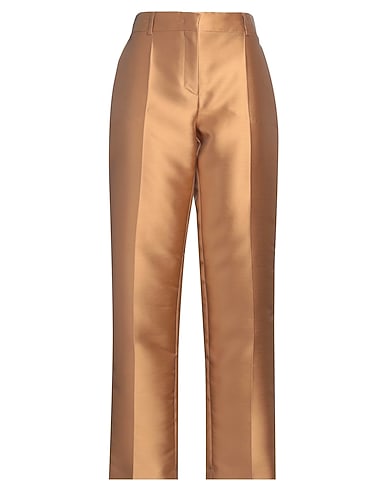 straight-leg pants, satin, solid color, no appliqués, mid rise, regular fit, zipper fastening, hook fastenings, multipockets, dry clean, do not bleach, do not tumble dry