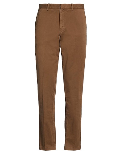 chino pants, twill, stretchy fabric, solid color, brand logo, mid rise, belt loops, tapered leg, slim fit, zipper fastening, hook fastenings, welt pockets, slit pockets, machine wash or dry clean, do not bleach, do not tumble dry