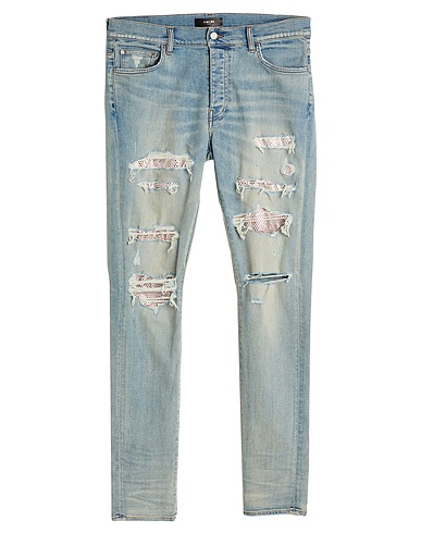 skinny jeans, denim, distressed, stretchy fabric, solid color with appliqués, crystals, brand logo, light wash, mid rise, regular fit, button fastenings, five pockets, do not wash, do not bleach, do not tumble dry