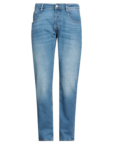 straight-leg jeans, denim, faded, stretchy fabric, solid color, brand logo, medium wash, mid rise, regular fit, zipper fastening, 1 button, five pockets, machine wash, do not bleach, do not tumble dry