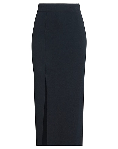 flared skirt, knitted, lightweight knit, solid color, no appliqués, elasticized waist, unlined, front slit, machine wash or dry clean, do not bleach, do not tumble dry