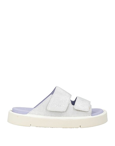 sandals, leather, metallic, solid color, no appliqués, leather lining, velcro fastening, round toe, flat, rubber sole, contains non-textile parts of animal origin