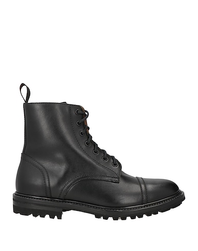 combat boots, leather, solid color, no appliqués, leather lining, lace-up, round toe, square heel, lug sole, contains non-textile parts of animal origin