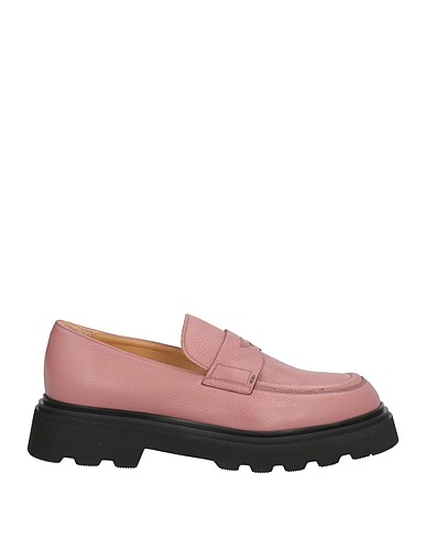 penny loafers, pebbled-leather, solid color, no appliqués, leather lining, round toe, square heel, rubber heel, rubber cleated sole, contains non-textile parts of animal origin