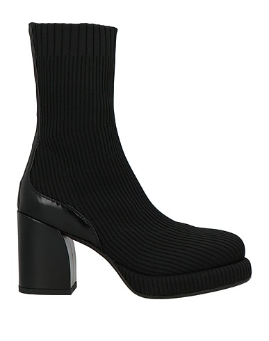 sock ankle boots, knitted, solid color, coated fabric trims, leather lining, round toe, geometric heel, rubber sole, contains non-textile parts of animal origin