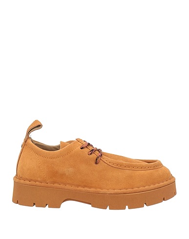 lace-up shoes, suede, solid color, brand logo, unlined, round toe, square heel, rubber cleated sole, contains non-textile parts of animal origin