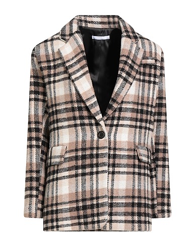 single-breasted blazer, flannel, tartan pattern, no appliqués, lapel collar, long sleeves, fully lined, 1 button, flap pockets, faux pockets, machine wash or dry clean, do not bleach, tumble dry