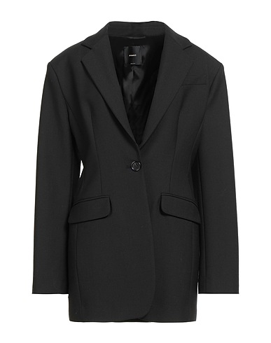 single-breasted blazer, twill, solid color, darts, lapel collar, long sleeves, shoulder pads, fully lined, 1 button, flap pockets, dry clean, do not bleach, do not tumble dry