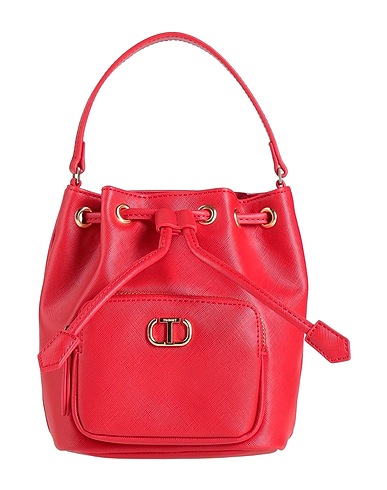 bucket bag, synthetic material, solid color, brand logo, drawstring fastening, fully lined, external pocket with zip, bag handle, detachable shoulder strap, medium size