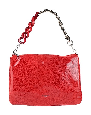 handbag, leather, solid color, brand logo, zipper fastening, fully lined, internal compartments, bag handle, detachable shoulder strap, large size, contains non-textile parts of animal origin