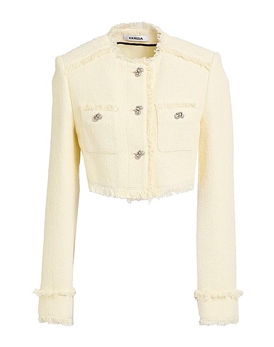 jacket, tweed, solid color, fringes, crewneck, long sleeves, fully lined, button fastenings, multipockets, dry clean, do not bleach, do not tumble dry