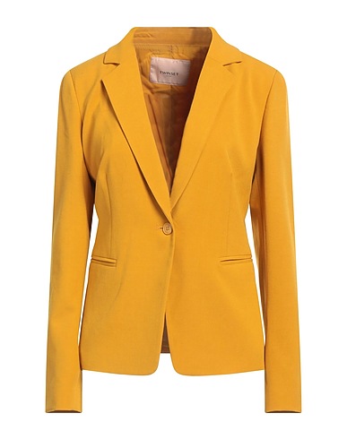 single-breasted blazer, crepe, solid color, brand logo, lapel collar, long sleeves, fully lined, 1 button, multipockets, stretch, dry clean, do not bleach, do not tumble dry