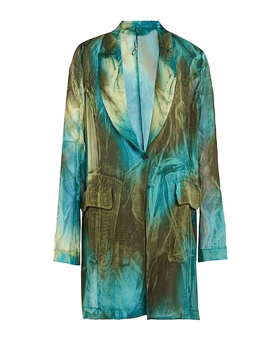 double-breasted blazer, crepe, tie-dyed, no appliqués, lapel collar, long sleeves, unlined, button fastenings, multipockets, rear slit, dry clean, do not bleach, do not tumble dry