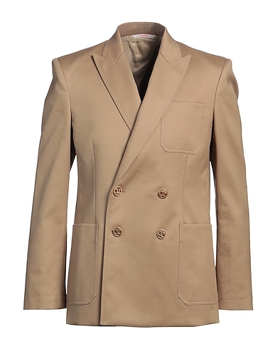 single-breasted blazer, woven, solid color, brand logo, lapel collar, long sleeves, partially lined, button fastenings, multipockets, contains non-textile parts of animal origin, dry clean, do not bleach, do not tumble dry
