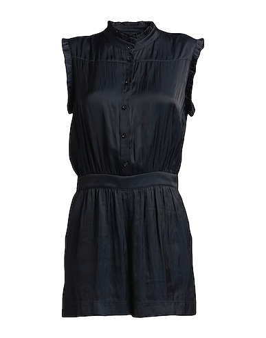 satin, solid color, gathered, mandarin collar, sleeveless, button fastenings, multipockets, elasticized waist, hand wash or dry clean, do not bleach, do not tumble dry