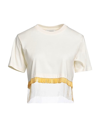 T-Shirt, Jersey, Tüll, zweifarbiger Print, Fransen, Rundhalsausschnitt, kurze Ärmel