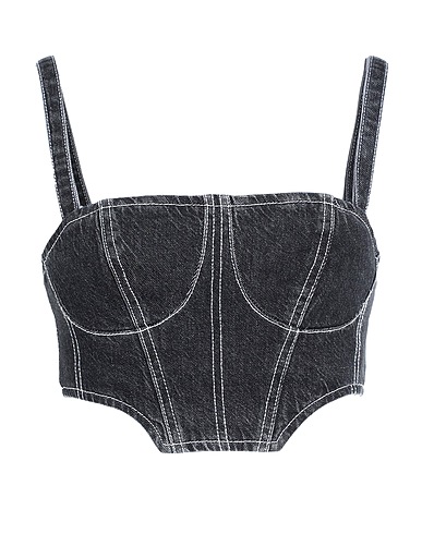 Denim, Délavé-Effekt, Brand Logo, einfarbig, Colored Wash, quadratischer Ausschnitt, ärmellos, gefüttert, Reißverschluss, Korsett