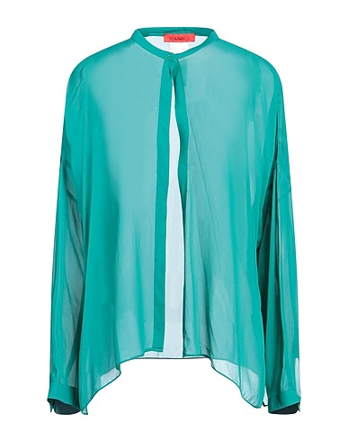 Krepp, ohne Applikationen, einfarbig, Rundhalsausschnitt, lange Ärmel, 1 Knopf, ohne Taschen, Hemd