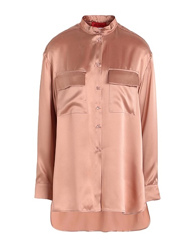 Satin, ohne Applikationen, einfarbig, chinesischer Kragen, lange Ärmel, Sportmanschetten mit Knöpfen, Knopfverschluss, doppelte Brusttasche, Enthält nichttextile Teile tierischen Ursprungs., Nicht chemisch reinigen, Trockner ungeeignet, nicht Bleichen, Hemd im Safari-Stil
