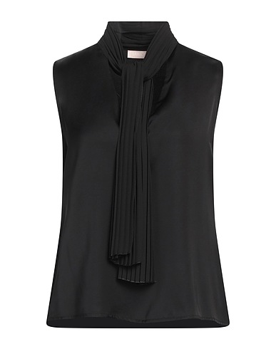 Bluse mit Schleife, Satin, einfarbig, ohne Applikationen, ärmellos, nicht mit Wasser waschen, nicht Bleichen, Trockner ungeeignet