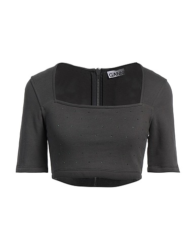 Crop Top, Sweatshirtstoff, Einfarbig mit Applikationen, Kristalle, quadratischer Ausschnitt, kurze Ärmel, Reißverschluss, Handwäsche oder Trockenreinigung, nicht Bleichen, Trockner ungeeignet
