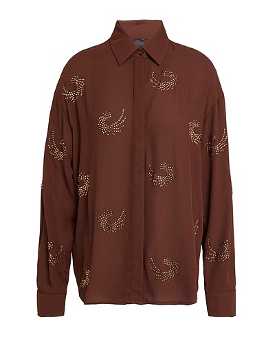 Hemd, Krepp, Einfarbig mit Applikationen, Kristalle, Klassischer Kragen, lange Ärmel, Sportmanschetten mit Knöpfen, Knopfverschluss, Handwäsche, nicht Bleichen, Trockner ungeeignet