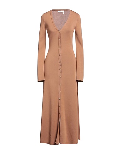 A-Linien-Kleid, Wolle, Leichter Strick, einfarbig, ohne Applikationen, V-Ausschnitt, lange Ärmel, ungefüttert, Knopfverschluss, Ohne Taschen, Die Bekleidung dieses Brands fällt groß aus